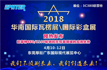 2018年4月公司參加華南國際瓦楞、彩盒展,在現場向全世界發出邀請函,發布660產品發布會日期,現場反應強烈,展位雖不隆重,但意義深遠,我們來了,要建設一個包裝印刷的新世界。